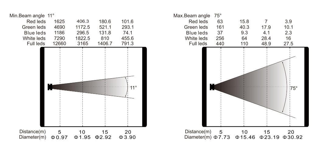 Zoom range: 11°- 75°(beam angle)