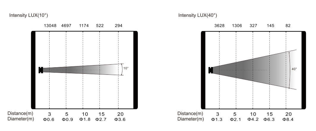 Zoom range: 10°-25°(beam angle), 15°-40°(field angle)